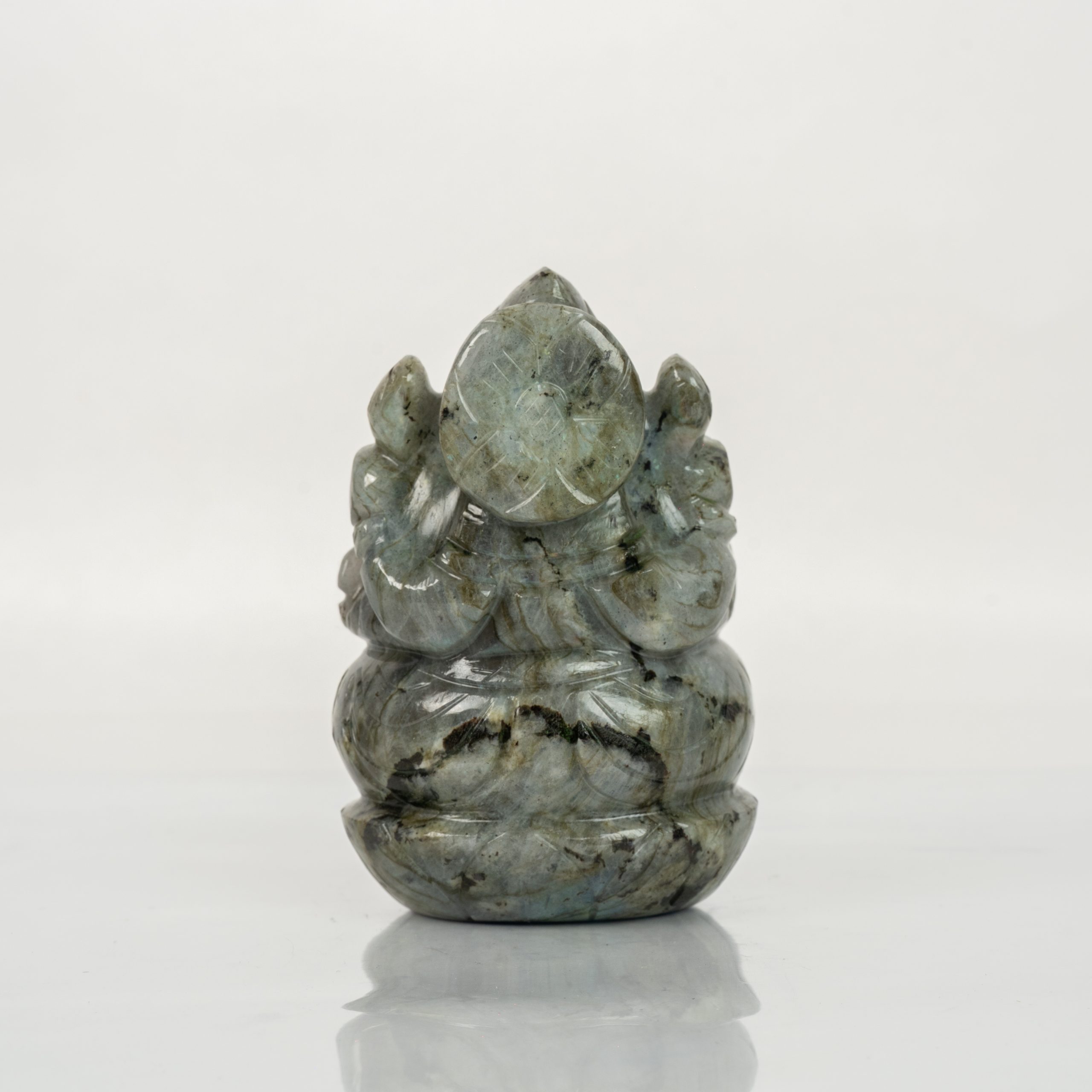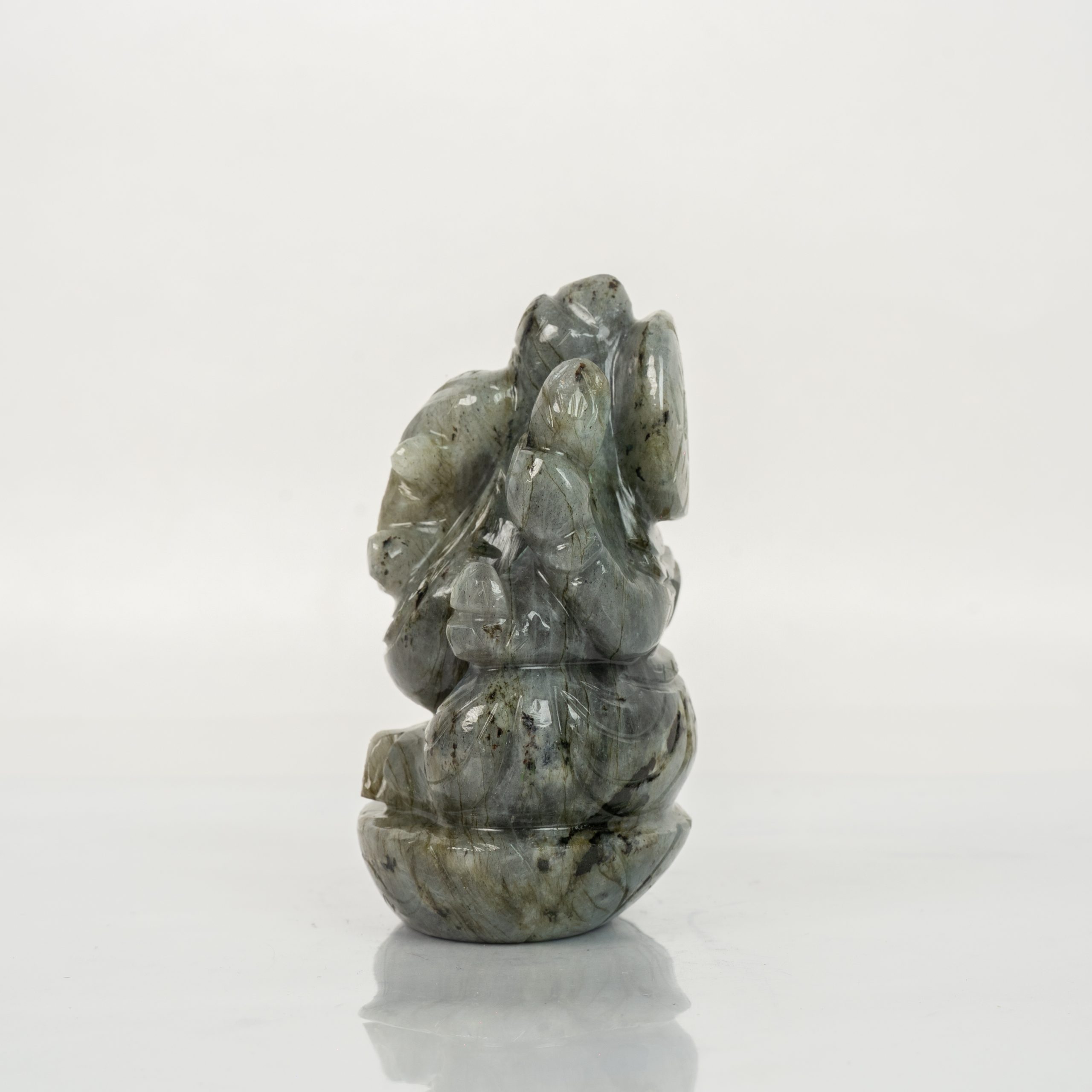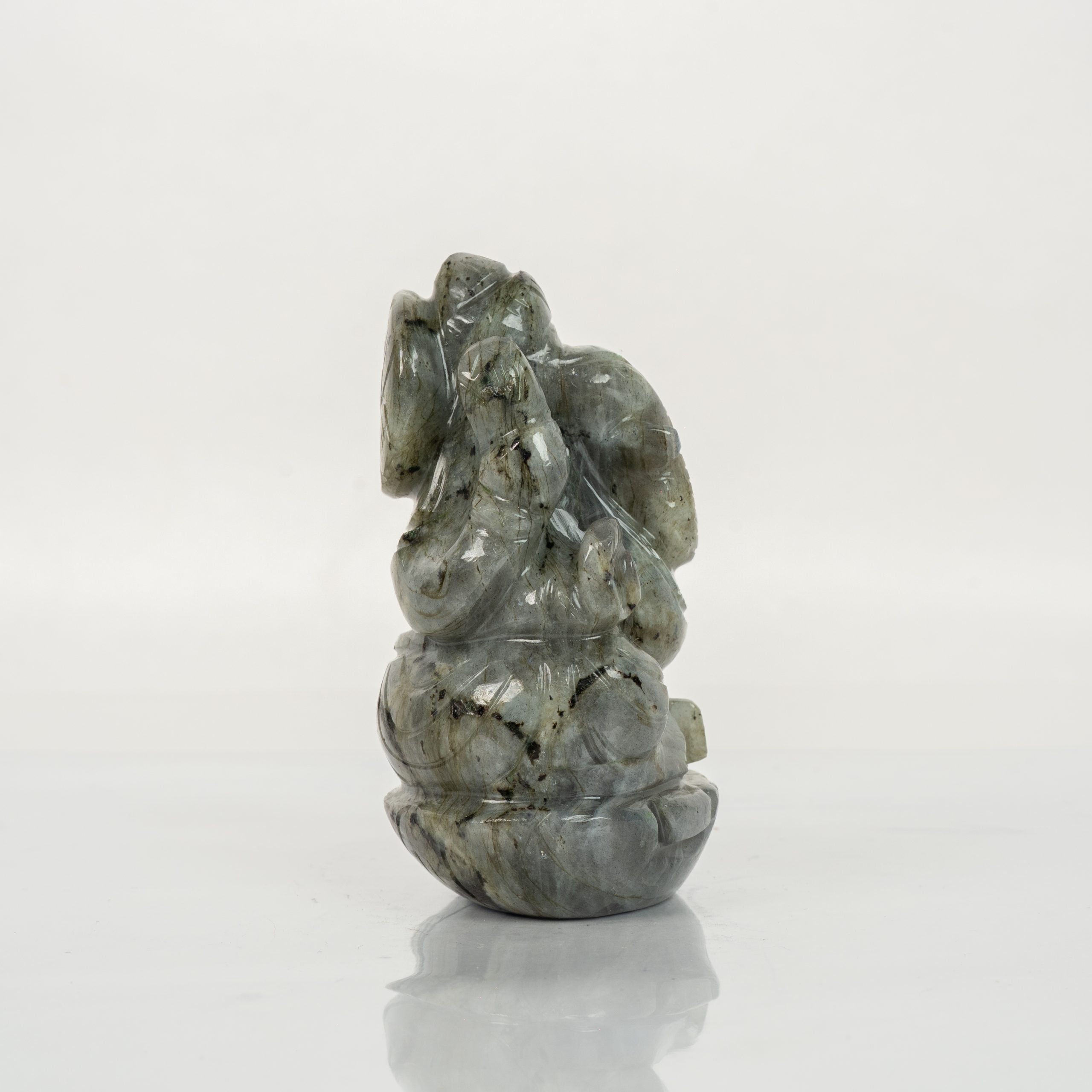Labradorite, known as the “Stone of Transformation and Protection,” helps enhance intuition, shield against negative energies, and boost spiritual growth. When carved in the form of Lord Ganesha, the remover of obstacles, it transforms into a powerful symbol of wisdom, protection, and inner strength.